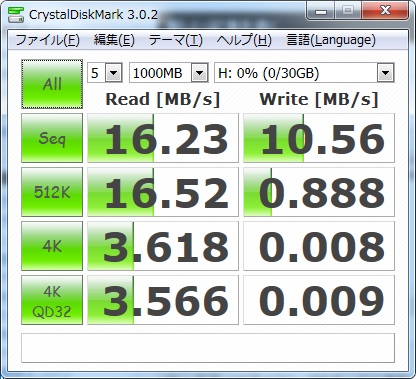 挿してた32Gと、安置してた8Gのベンチマークとってみた。