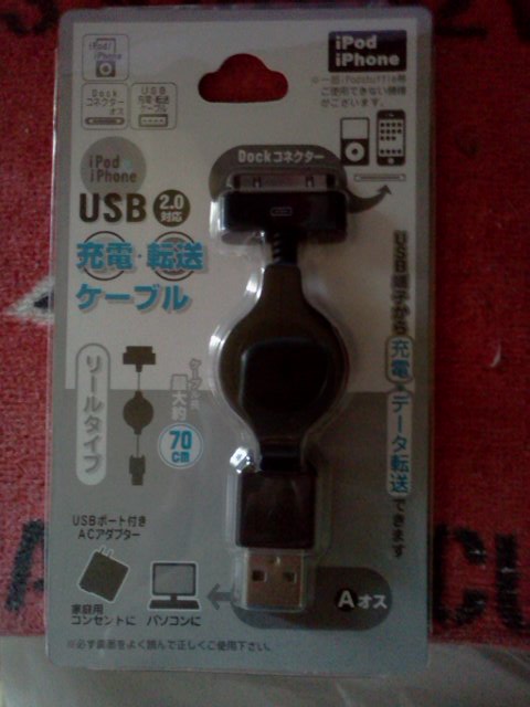リール式のiPodケーブル(充電・通信可)が売ってたので即査収。